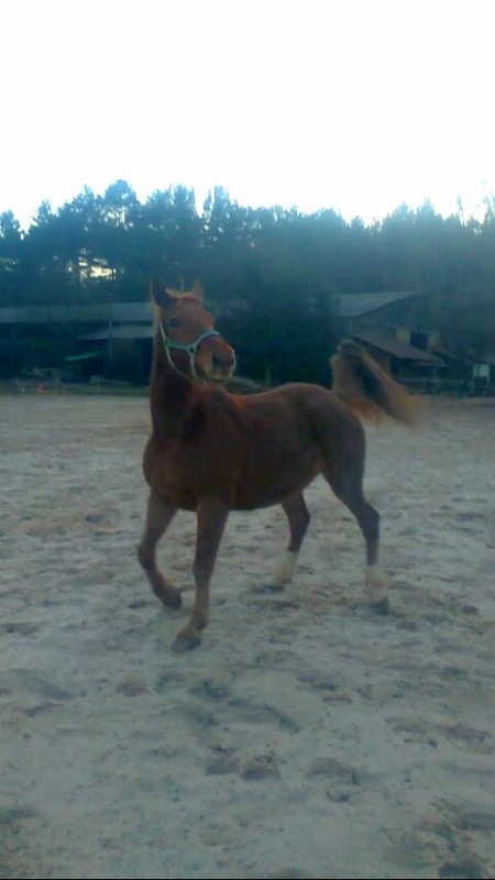 Dès le départ il était chaud et voulait trotter, alors je lui ai rappelé qu'un échauffement au pas est important... donc il s'est souvenu qu'il sait donner des coups de cul.