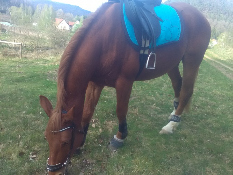aujourd'hui c'était test de la nouvelle selle. J'en suis ravie! déjà elle lui dégage correctement le dos et pose bien droite. Au premier abord elle avait l'air serrée devant, mais en fait non, même une fois en selle.