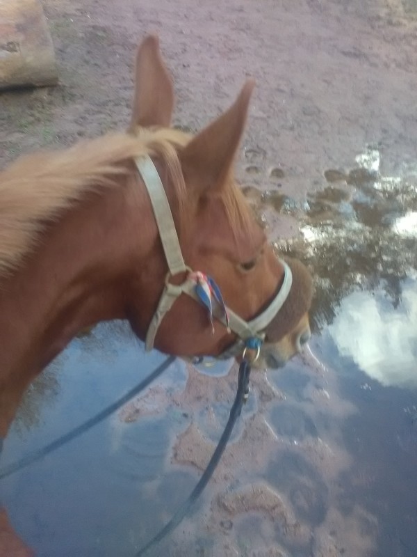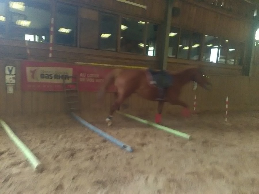 Bon, ça a été assez vite compris au pas mais le trot est toujours sujet à débat, j'ai donc employé la manière forte: j'ai tenu une cravache. Oui juste tenue, ça suffit déjà à le faire réagir comme si je l'utilisais... autant à pied il ne surréagit absolument pas, très zen et je peux la passer partout, autant monté même si je n'ai jamais agit avec, on a l'impression qu'il le prend mal que je sorte le matériel.