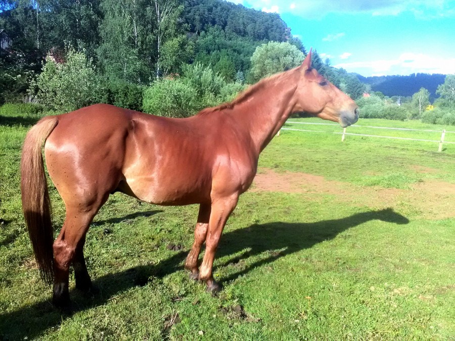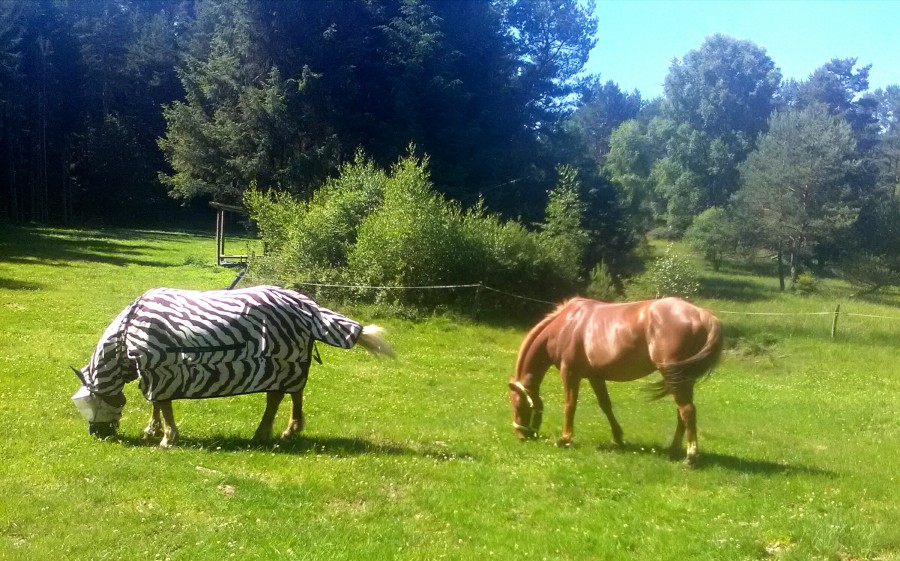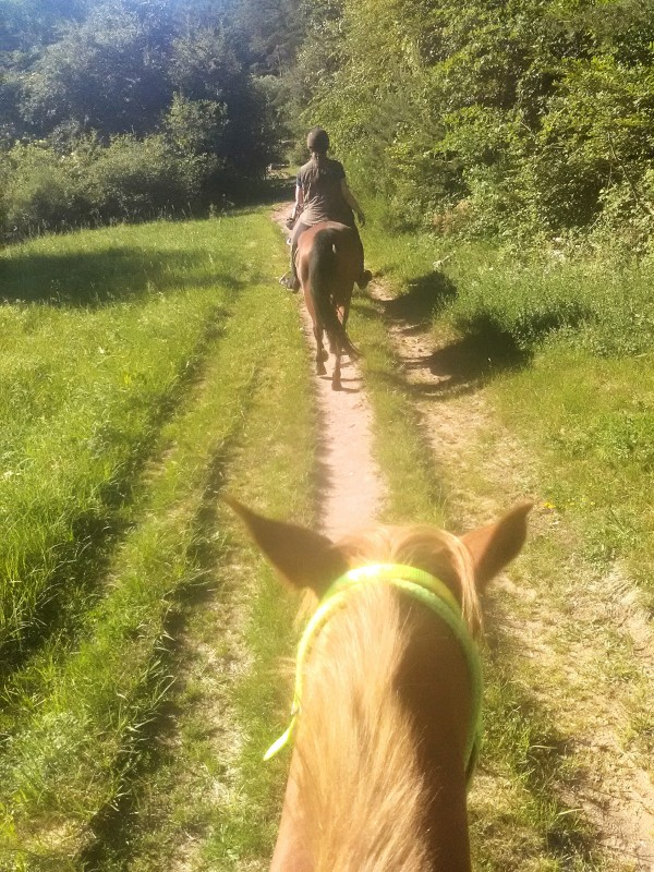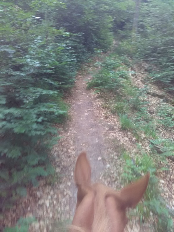 La suite de la balade était bien jusqu'à un petit incident, rien de méchant mais du coup loulou s'est bien amoché le sabot antérieur gauche... on est rentrés correctement, sans trop de gêne ( et en main malgré qu'il n'était pas boiteux, à peine irrégulier sur les cailloux), il gagne donc quelques jours de vraies vacances (les derniers 15 jours il a quand même bossé )et on ressortira en hipposandales par la suite.