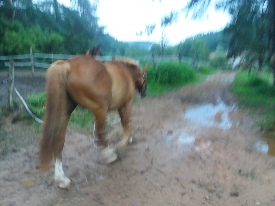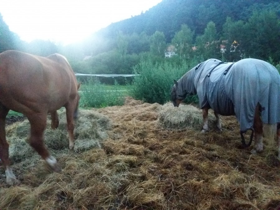 Ensuite vendredi il et retourné au pré, je l'avais rentré 3 jours en box paddock pour le vermifuger et nettoyer le parc, le voilà donc de nouveau dehors h24 avec copain Syrius. C'était un jour off.