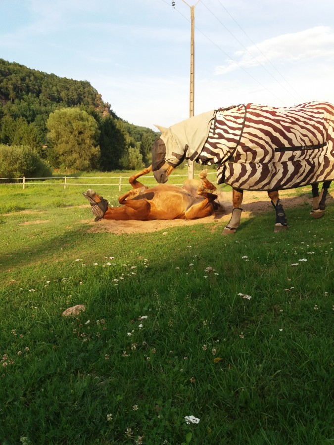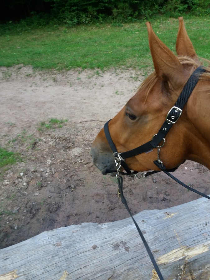 ces derniers jours ont été calmes pour Baroud, jeudi c'était petite séance en carrière, il faisait chaud et lourd, et loulou était mou, donc on a fait juste un échauffement et je l'ai laissé tranquille (il a du mal avec la chaleur le pauvre)