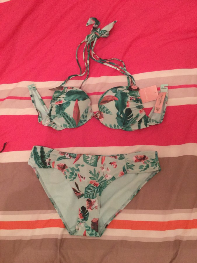 Je suis tombée par hasard dessus chez Primark, 14€, clairement ça tiendra le temps que ça tiendra. Mais un vert foncé qui va bien avec mes cheveux rouge, enfin des coques et un soutient et un gainage sur le ventre pour cacher ce qu'il faut !