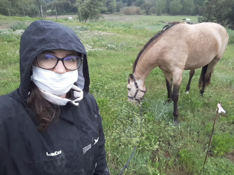 (Coucou le masque mal mis, m'enfin seule avec bichette en train de brouter dans un coin reculé de la pension, il y avait pas grande utilité :) )