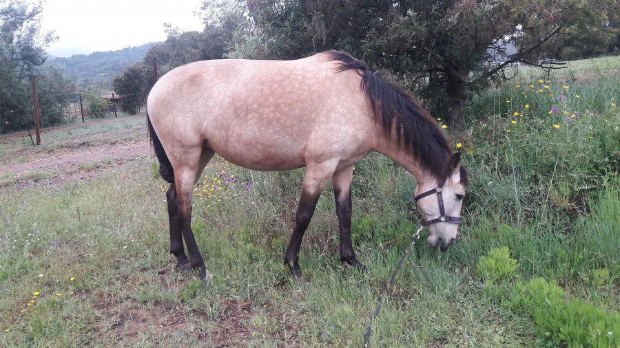 Son petit nom, c'est Docura du Castel, lusitanien PP, elle a 3 ans, mesure (déjà ) un peu plus d'1m60.