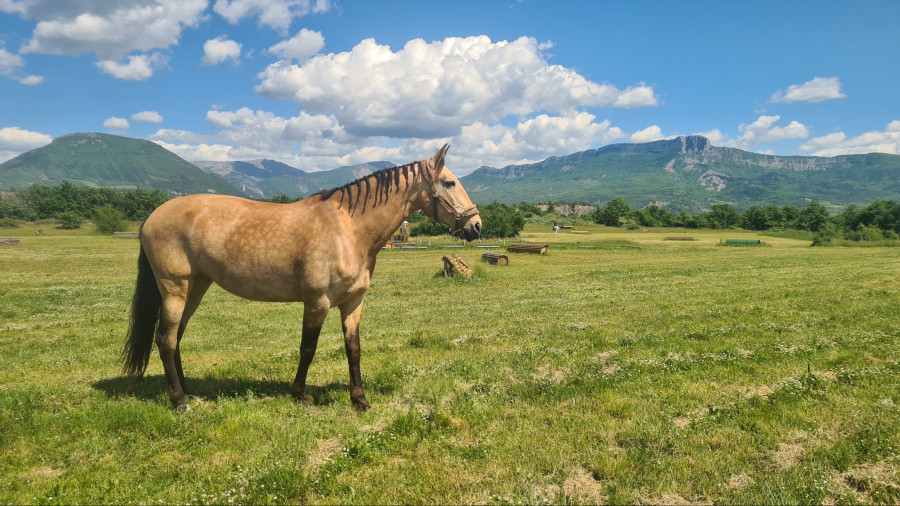 Vient le jour où je quitte la prepa (trop de maths pour mon petit cerveau de biologiste ) pour aller en médecine (cette année donc). Je cherche donc des pensions pour rapatrier le monstre près ce chez moi. C'était pas simple, une seule pension pré dans un rayon de .... beaucoup de km XD, mauvais sol, pré pas clôturé entièrement, près de la route, gérante limite... mais vie en troupeau ... Mais je ne voulais pas perdre ma jument maintenant, alors j'ai cherché d'autres pensions. Là j'ai trouvé une très bonne pension paddock, avec copains, bref le top (après le pré bien sur...). C'est ici qu'elle est aujourd'hui. Elle y est très bien.