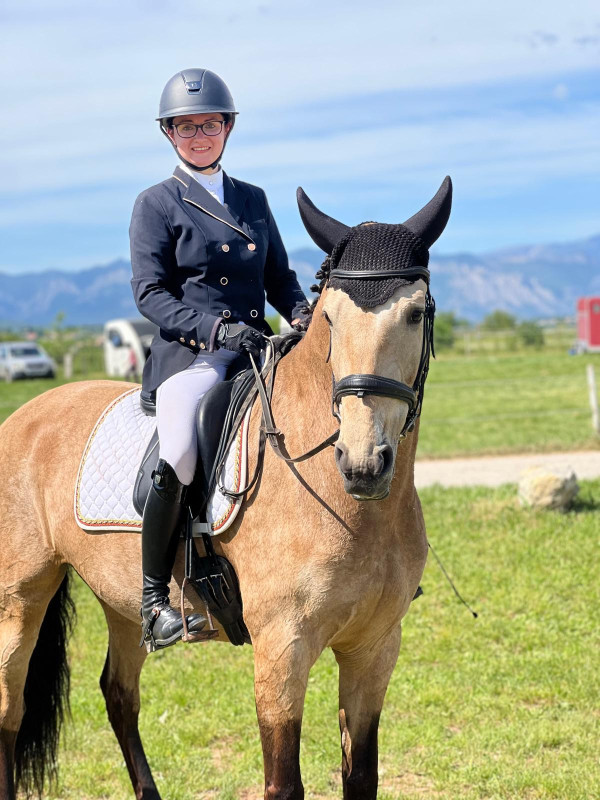 Globalement tout pourrait être peaufiné, les allongements au trot sont infâmes (surtout qu'elle me les fait super à la maison XD, les cdp sont un peu aléatoires dans leur qualité et les appuyer mériteraient plus d'expression. Mais on commence à faire le job, alors je suis tout de même contente de nous.