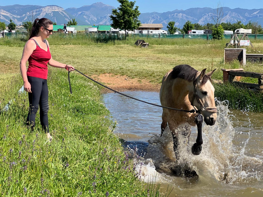 Et entre temps évidemment on continue notre quotidien : sorties quotidiennes, on a alterné une bonne balade, longe, jour de repos, cours, brouting, stretching !