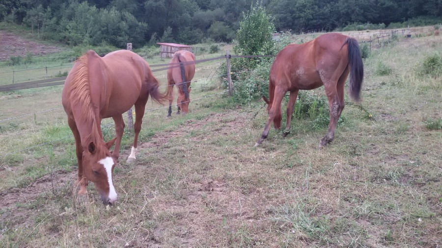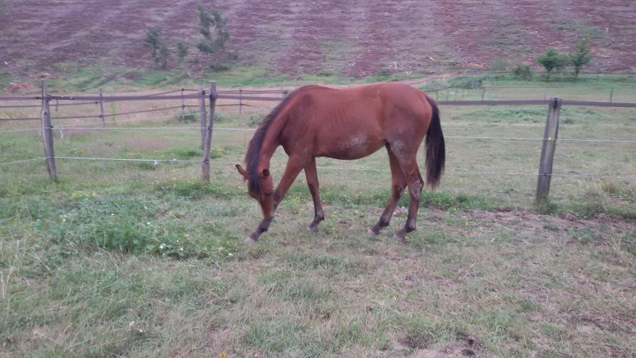 Après m'avoir fait une petite frayeur au petit matin... genre je me couche et re-couche et je me roule, ça, 4 fois en 5 mn... parce que je voulais le licoler... j'ai eu un coup de flippe quand même croyant un instant qu'il me faisait une colique de stress parce que je ne le laissait pas finir sa ration...