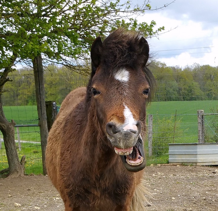 Mais où est passée sa crinière argentée ? Suis bien curieuse de la voir sans sa toison d'hiver ! Mais qu'elle la garde encore un peu, hier matin, nous avons eu -7...