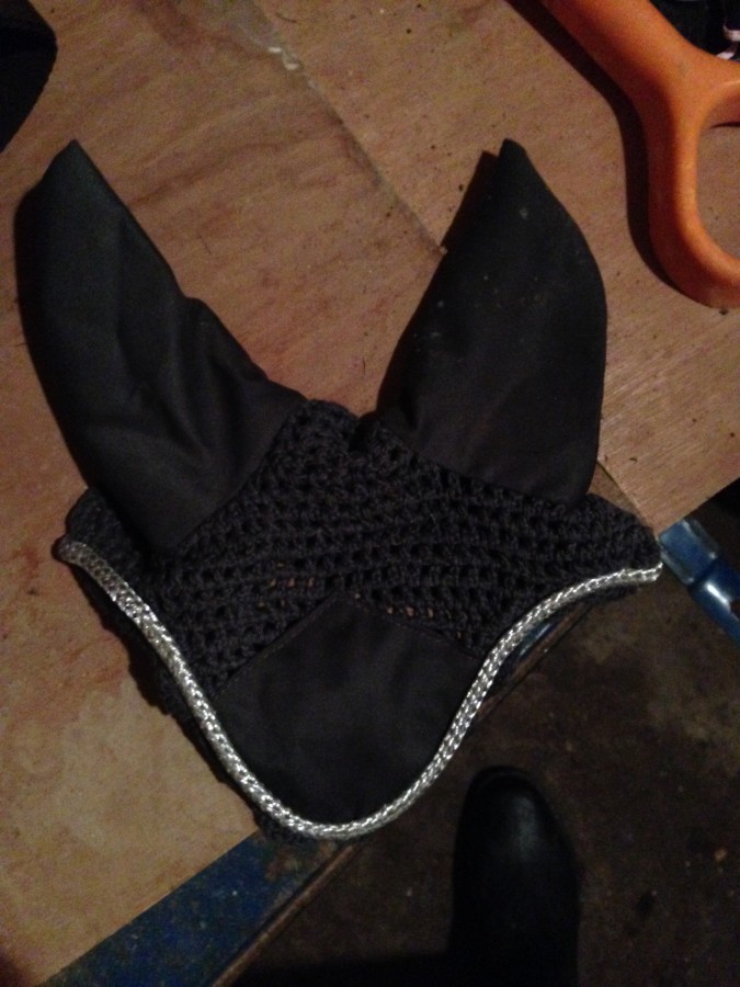 - Un bonnet gris anthracite avec une cordelette argentée, taille poney ( pour petits poneys ), de marque HKM, jamais servi, 5€ fdpc.