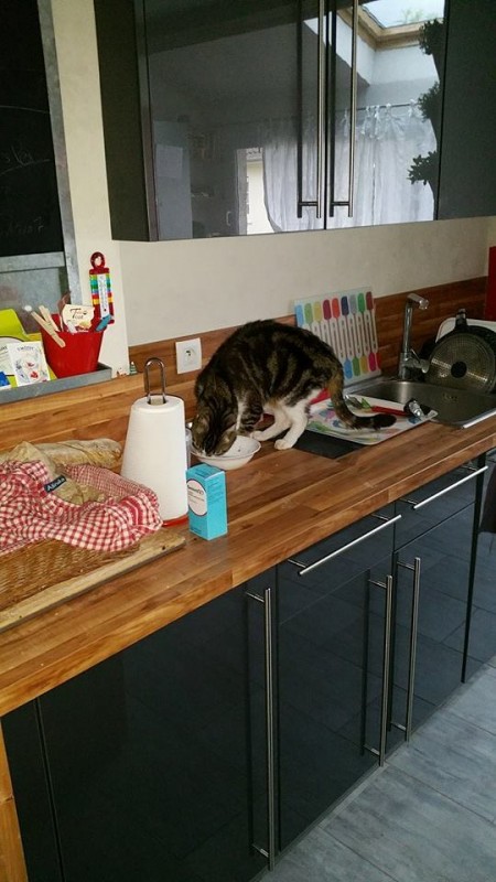 Je dois préciser que monsieur est très difficile. Il n'aime que le poulet et le poisson (et les terra fealis lapin). Il boude tout ce qui n'en contient pas, il n'a jamais volé de bouffe hormis du poulet ^^