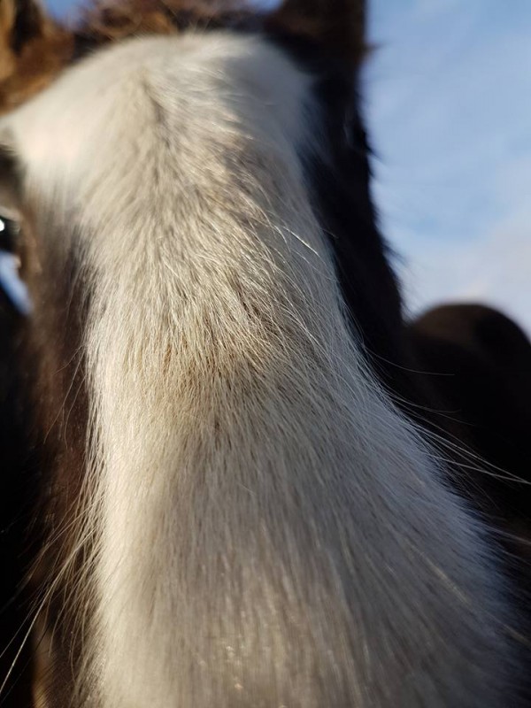 Comme en plus maman est noire et qu'elle était à l'ombre... ça n'aide pas. Moon, avec la chance qui la caractérise, choisi de partir à droite au galop voir si maman est près du foin... revient au galop... fini par apercevoir maman qui bien sûr était partie dans la direction opposée, avec maintenant entre les deux une cloture de séparation.
