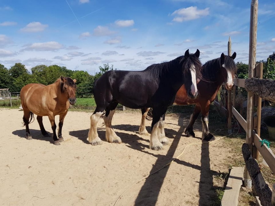 Pas de souci, je licole Sunshine, qui à la saison des pommes est toujours d'une extrême bonne volonté, et après un rapide bug (J AI PEUR DU LICOL !! ah non en fait c'est bon.), Thames est licolée par Michael. Je passe devant, Thames suit gentiment.