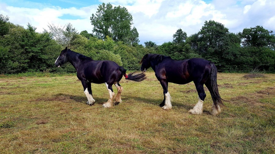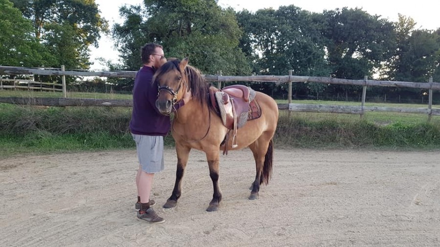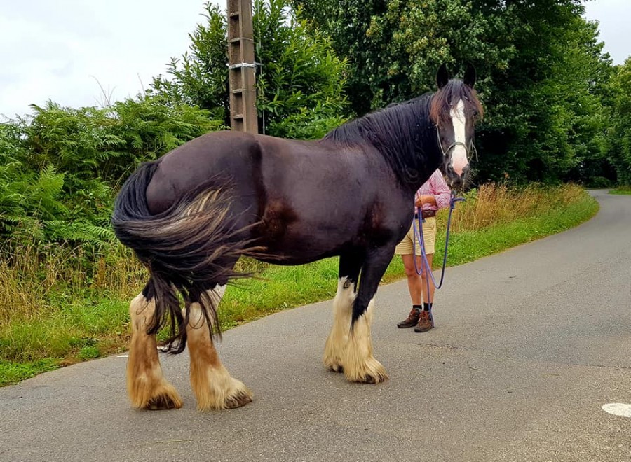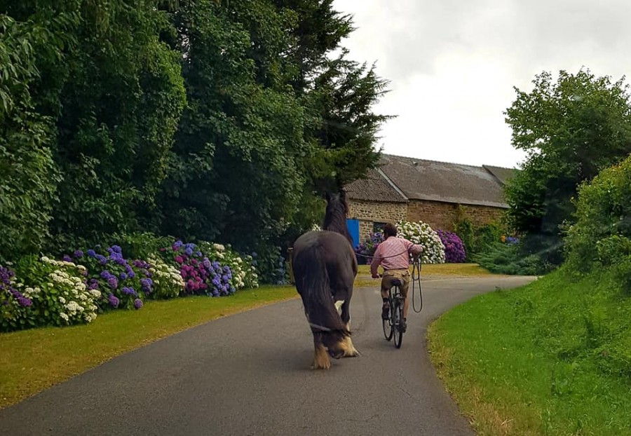 Le jour J, B se fait donc déposer avec son vélo chez nous. Il a une trentaine de chevaux dont des shires, des étalons, des anes, il a vu toutes formes de bourrins possible et absolument rien ne l'impressionne.