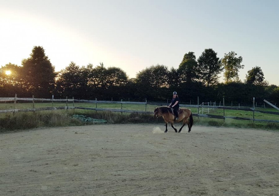 je suis toujours tendue en selle, mais il faut avouer que le niveau d'adrénaline sur Coco n'éclate pas le plafond. par contre on voit bien que l'équitation c'est un sport, parce que le niveau d'énergie qu'il faut développer pour la faire avancer...