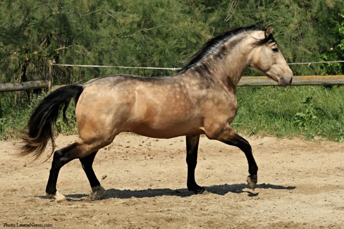 Il peut s'exprimer par des crins gris et/ou noirs, par des pommelures, parfois simplement par une pseudo raie de mulet.