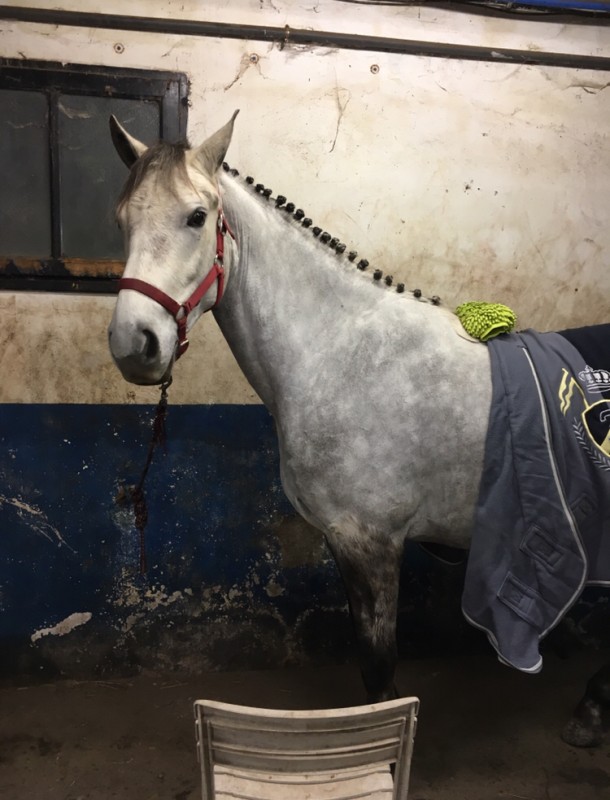 Sur le tour, assez propre, je suis obligée d'y mettre quelques manchettes mais il revient. Et puis dans une ligne, la cavalière avant moi avait mis 7 foulées, coach avait dit que vu son amplitude il en mettrait 6 grand max, voir plutôt 5, 4 si je l'envoie dedans