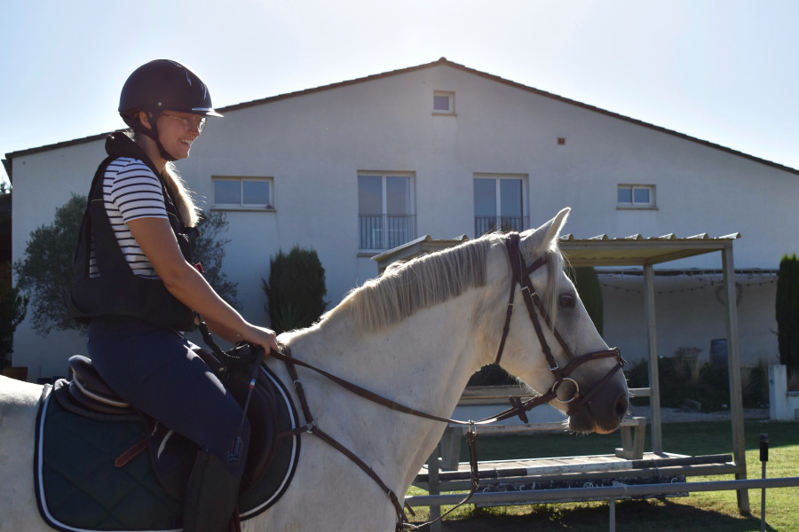 On est tombés dans une super écurie, avec une coach géniale et hyper polyvalente, qui fait du classique CSO CCE dressage, mais aussi de l'équitation de travail, on se régale !