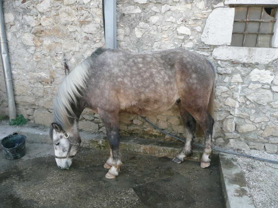 On me présente un 3 ans gris, tout mignon et bien fait, je l'aime déjà. Le père est connemara, la mère PFS x PS.