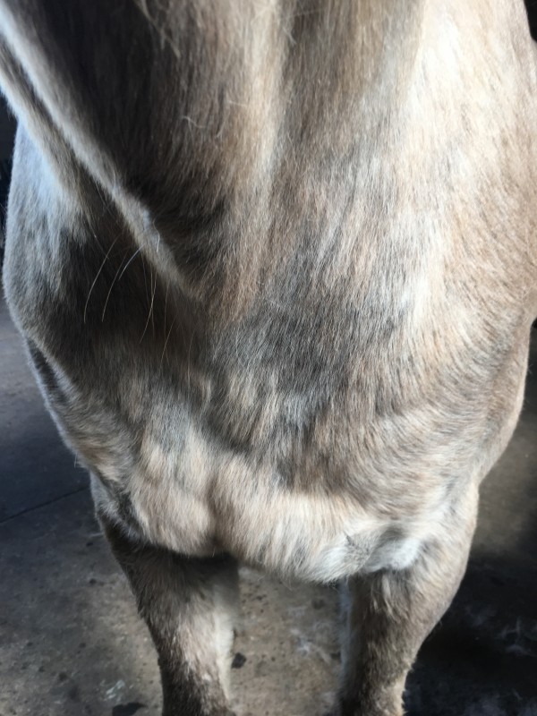 Mais à certains endroits il a perdu plus de poils, et on dirait qu'il va être gris