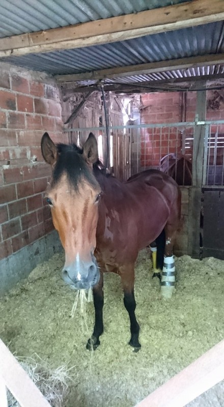 A l'origine je devais le récupérer le mercredi 29 juin sauf que les vétos étaient contre car s'il était bien sur son plâtre au paravent, après l'avoir enlevé ainsi que le cathéters, ils l'avaient passé sur un pansement robert jones le week-end du 25/26 mais il ne voulait plus ce servir de son pied alors qu'avec le plâtre il n'y avait pas de soucis. Il y avait du coup risque de fourbure sur son autre postérieur...