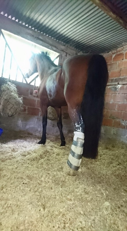 Sinon argile + bandes à fond sur son postérieur ou il compense et au dessus de son pansement car du à la compression je pense il est légèrement gonflé en interne. J'ai attaqué aussi une cure de EKYFLEX tendon de chez audevard je me doute que c'est pas un produit miracle mais je me dit qu'un petit + plus beaucoup d'autres ça ne peut que aidé à aller mieux.
