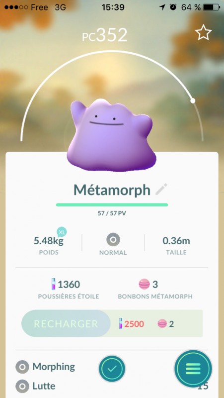J'ai eu un metamorph en attrapant un roucool alors que j'allumais l'application 5 min ! Je pensais qu'il n'était pas encore dispo... Vous croyez que c'est avec l'évent thanksgiving ?? Aurons nous peut-être les légendaires en même temps ? :D