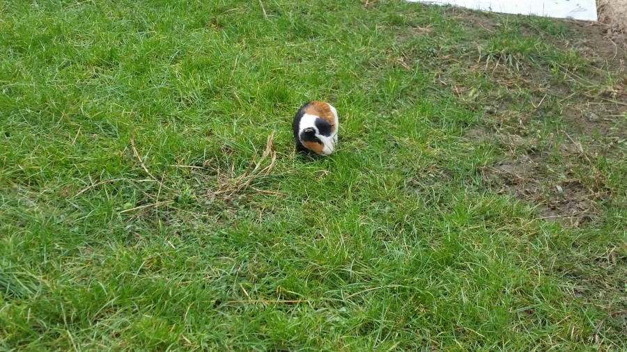 Du coup il sort en liberté quand je jardine, sinon c'est clapier d'extérieur (posé sur le sol donc accès à l'herbe)