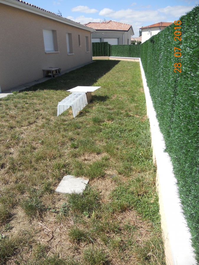 Je suis en lotissement donc hormis les rares chats qui passe les 1m80 de grillage, aucuns autre animal ne peux rentrer. Voici la cloture pour imager...