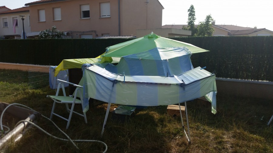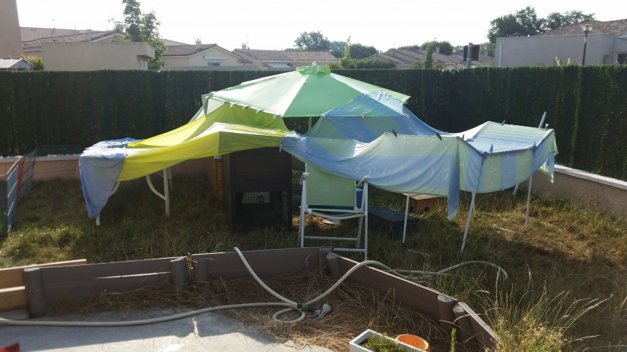 J'ai mis du linge mouillé partout en espérant que ça leur apporte un peu de fraîcheur et que ça fasse pas un effet de serre