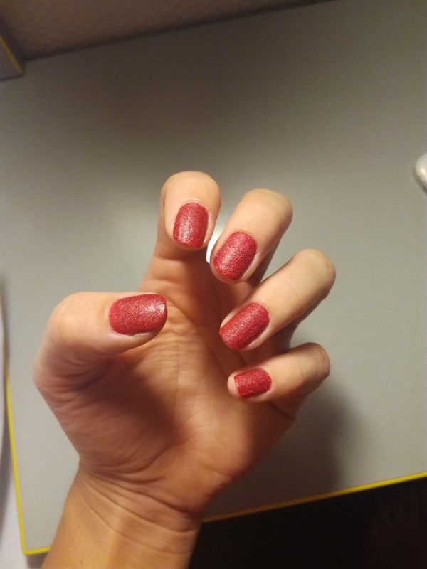 Bon par contre trop deg, ma collègue de boulot m'as dit que normalement j'ai pas le droit d'avoir du vernis. Du coup je vais tout enlever ce soir, mais je ne sais pas si je dis adieu au vernis ou si je m'en fait que le week-end
