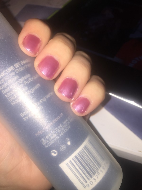 ptitebailey Bah pas tellement ! Elle met base-couleur et après c'est une petite poudre qu'elle étale et ensuite top coat. Bon je sais pas combien de temps ça tient