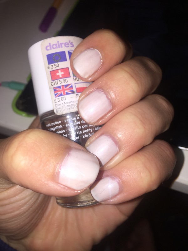 Blanc nacré cette semaine, bon j'en ai marre que ça soit pas opaque par contre