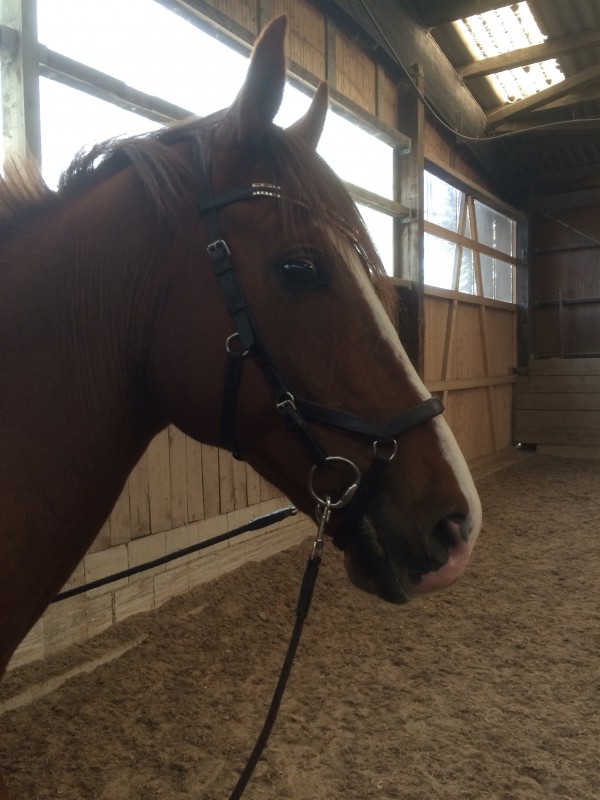 . Il avait alors deux chemins possibles, soit sortir de la pension, soit prendre un chemin qui l'emmenait dans les prés et le bloquait dedans (c'est un cul de sac et le chemin est assez étroit pour empêcher un cheval de passer). Heureusement il a pris la 2ème option et j'ai pu l'attraper.