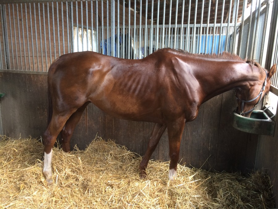 - infection : il a fait il y a 3 semaines une grosse infection à un postérieur (plaie refermée au spray alu alors qu'elle était encore sale). Il a donc dû avoir une grosse dose de médocs et devait sortir des courses pour au minimum 3 semaines pour respecter le délai de carence de dopage. Ca a aussi été un élément décisif pour la vente.