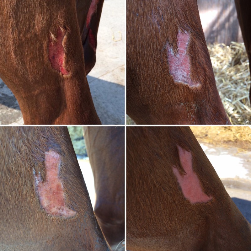 Du coup j'ai une question vu que tu deviens une pro des blessures (bon ok c'est pas très drôle ...), le poulain à la maison à plein de cicatrices (donc peau déjà réformée dessus la blessure) comme amor, et les mouches n'arrêtent pas de sagglutiner dessus, pourtant y a pas de sang la croûte est déjà réformée ...