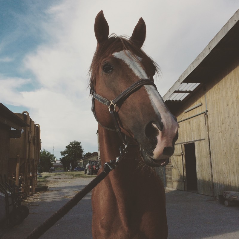 En forêt ce weekend une de nous a quitté le groupe vers la fin de la balade pour aller galoper de son côté. Elle a malheureusement pris le galop juste à côté de nous et Amor s'est dit "Chouette on galope !". Il a directement démarré au galop. L'arrêter n'a pas été un problème, le problème était plutôt que j'avais les rênes à la couture...alors d'abord on récupère les rênes en urgence et ensuite on arrête le guépard.