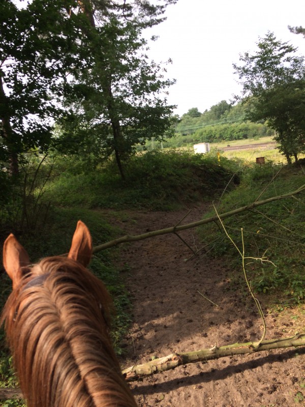 Mardi on a recommencé et cette fois on est passés au-dessus de la voie ferrée pour aller dans la vraie forêt. On a même trotté. J'ai pas vraiment de mots pour exprimer l'émotion que j'ai ressenti, de me rendre compte que j'étais sur un gentil cheval, qui s'arrête quand je lui demande, qui me suit sans broncher, même s'il a essayé 2 fois de se rebeller gentiment parce qu'il voulait rentrer. On a fait un peu moins d'une heure de trot sur terrains vallonnés.