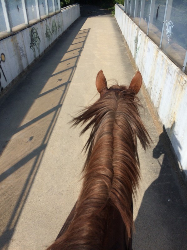 Lundi on a fait que du pas à proximité de l'écurie, et il y a eu pas mal de négociations sur le chemin à prendre. Mais j'ai réussi à l'emmener où je voulais et il m'a finalement fait confiance.