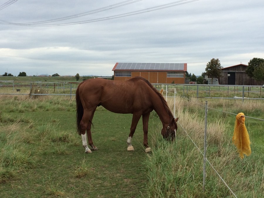 Les pieds ça va à la perfection. Il est beaucoup mieux avec ses fers (ce qui pourrait aussi contribuer au regain de patate...pas facile de marcher quand les hipposandales font mal aux pieds ou que les cailloux gênent).