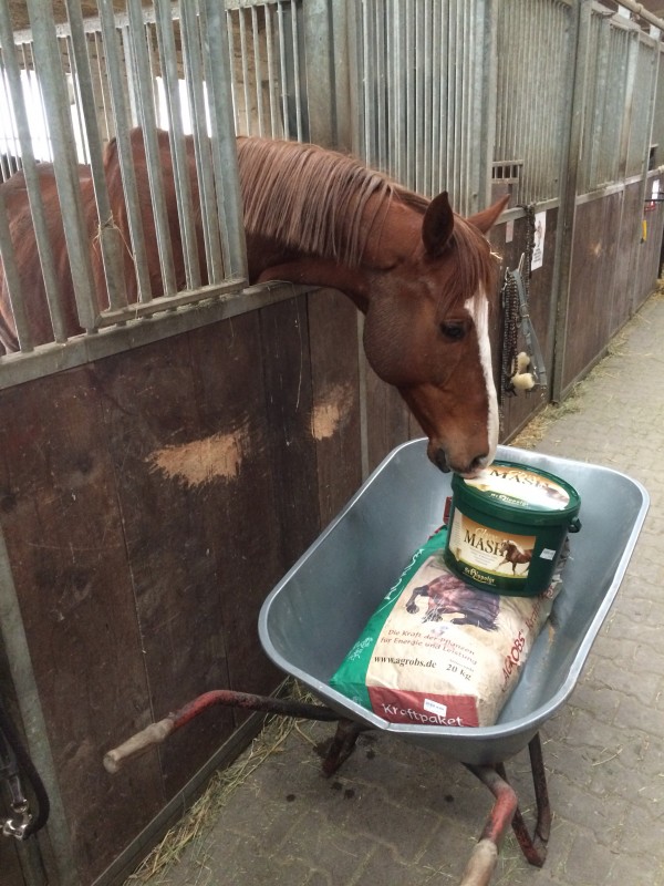- Je vais devoir changer l'alimentation d'Amor. J'avais déjà prévu de réduire le Pavo (l'aliment sport) pour augmenter la ration de l'écurie et voir si ça passe. Par contre maintenant je dois aussi trouver dès demain un remplaçant à mon aliment à base de luzerne et maïs, car les aliments Agrobs sont en rupture de stock, et j'en ai plus ...je pense partir sur de la luzerne pure + maïs séparés...si y en a encore...sinon il faudra que je regarde pour la même chose dans une autre marque.