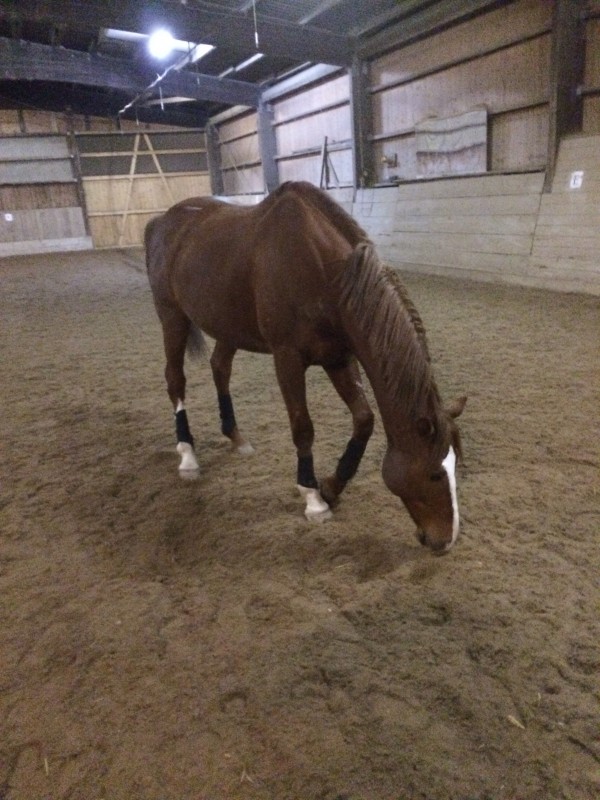 Il n'a pas non plus essayé de jouer avec l'autre cheval, alors que c'était son copain pie. Il a fait ça comme un bon vieux cheval de club j'en revenais pas.