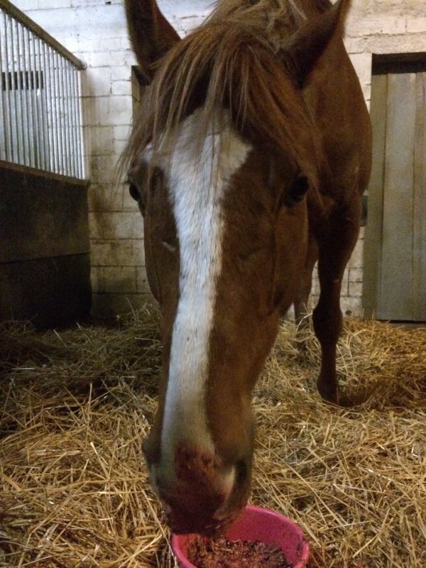 C'est parti pour les nouveaux compléments. J'ai pris de l'echinacee, du zinc pur et une dose de mash individuelle de chez Nösenberger, prévue pour le système immunitaire, avec des betteraves rouges, des cynorrhodons. J'ai bien fait de prendre que la monodose, Amor ne le mange pas de bon gré. Par contre ca a fait des super photos voilà mon petit cannibale !