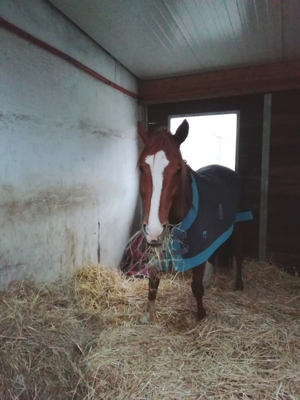 Hier j'ai acheté Amor, et celui-ci est arrivé dans ma pension. Il occupe l'ancien box de Cuba, ce qui ne me gêne pas du tout heureusement (les boxs sont tous les mêmes, je ne reconnais le mien que parce que mon cheval est dedans ).