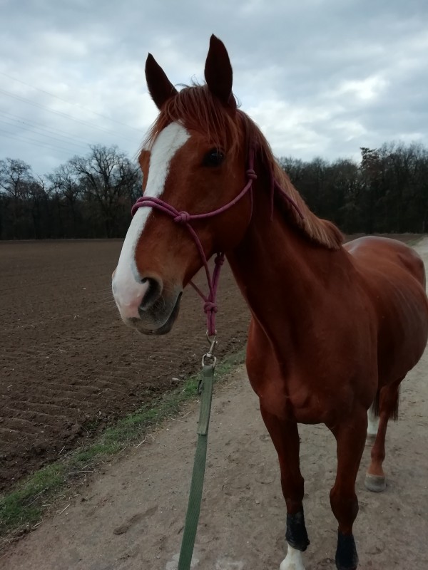 Amor est enfin droit depuis ce weekend. Cette semaine c'est longe, liberté, travail en main. Le weekend prochain j'essaierais peut-être de monter. Il a enfin arrêté de trébucher au pas (le postérieur boiteux bloquait parfois et ça faisait partir toute l'arrière-main).