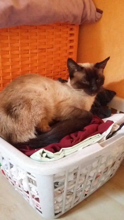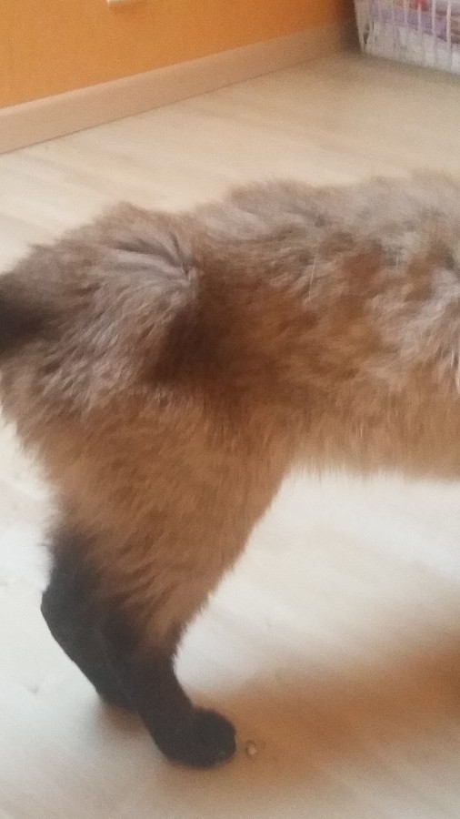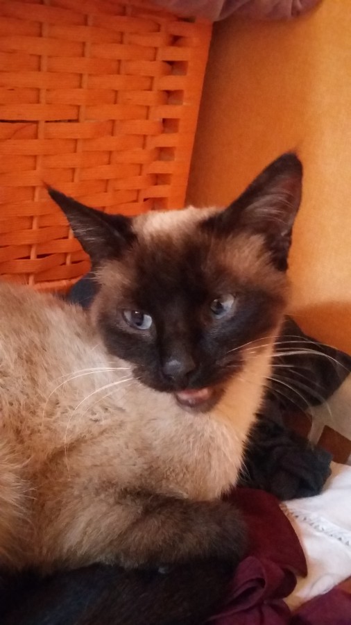 Depuis une dizaine de jours, un chat siamois est arrivée aux écuries; pas en bel état, elle doit traîner depuis longtemps. On a réussi à l'attraper aujourd'hui grâce aux croquettes car affamée. On l'emmène chez le véto: pas identifiée, ne semble pas malade (poils corrects, yeux et nez nets).