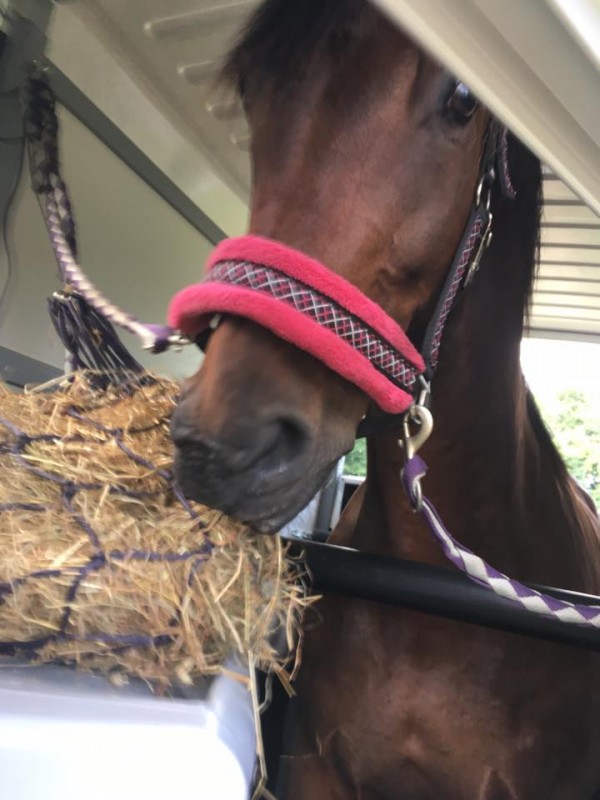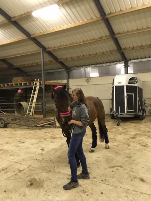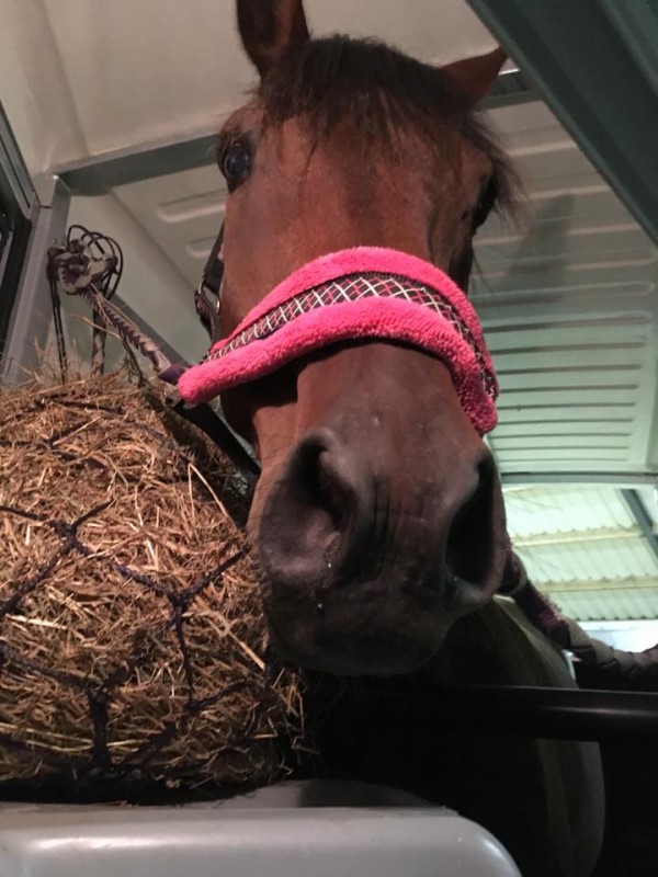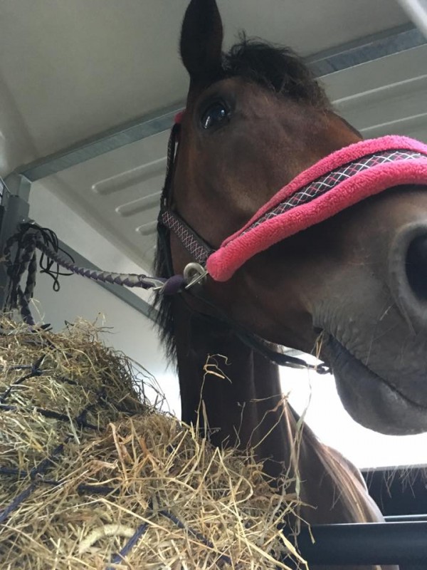 Je tombe face à face avec un cheval doté d'un calme inimaginable, très doux et tranquille à la sortie du boxe et à l'attache, ainsi qu'à la préparation.