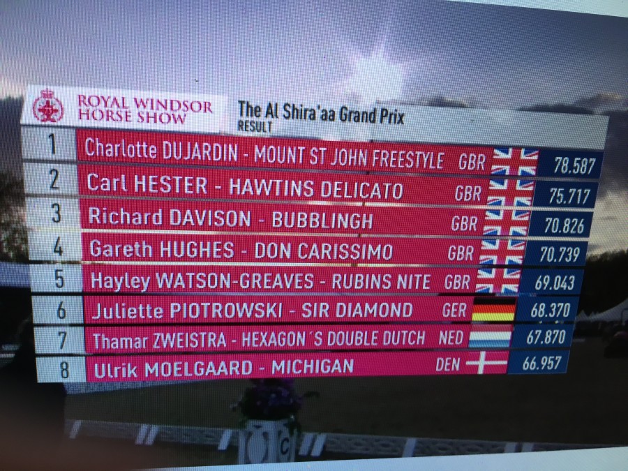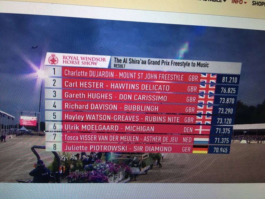 Côté dressage, CDI de Windsor, le résultat est parfait pour moi ^^