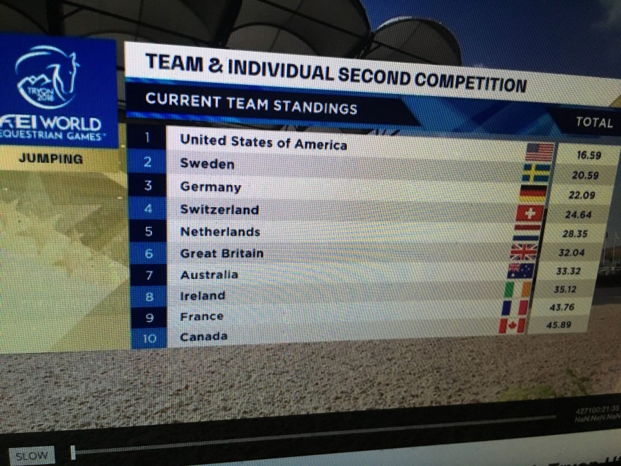 Entre l'Allemagne et la Suisse pour le bronze, si l'Allemagne "craque", la Suisse peut prendre la place si Steve Guerdat reste à 0 points...